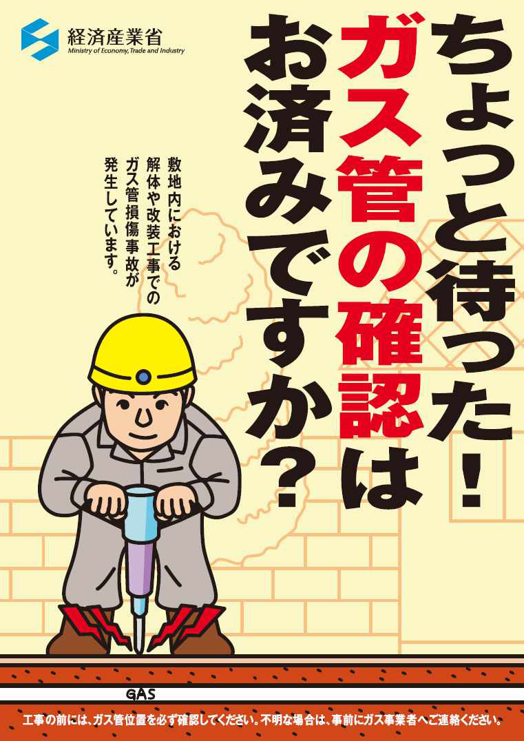 近年、道路または敷地内での工事の際に、誤ってガス管を損傷する事故が全国的に増加しています。